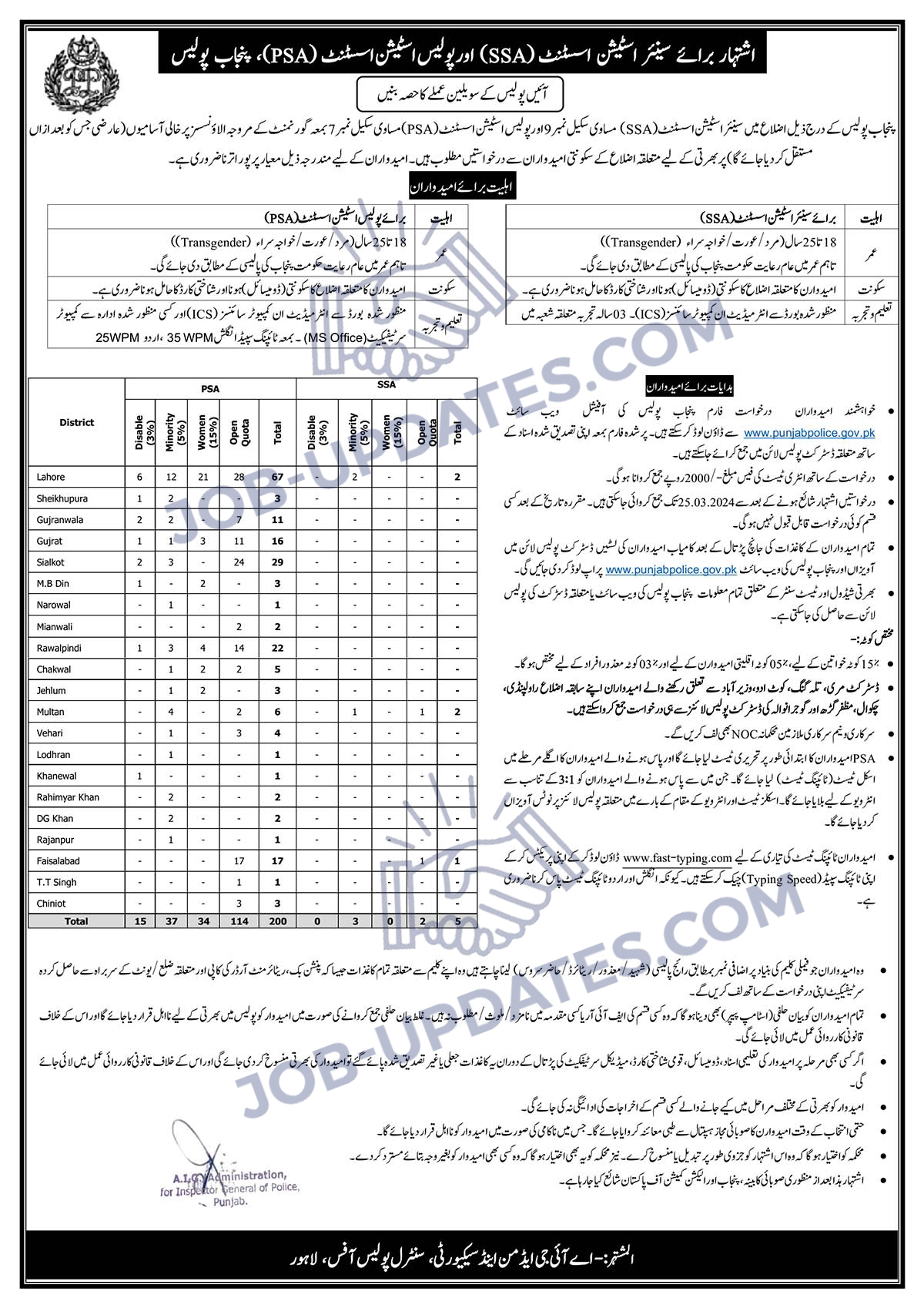 Punjab Police Jobs March 2024 PSA & SSA Application Form Download Latest